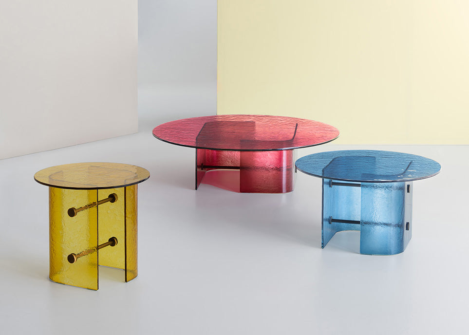 The Double L Glaze coffee tables introduce a vibrant all-glass edition, available in three sizes and in Honey, Cherry, and Blueberry hues. With a feminine, minimalist aesthetic, the collection is defined by its lightness, refined craftsmanship, and intricate details.