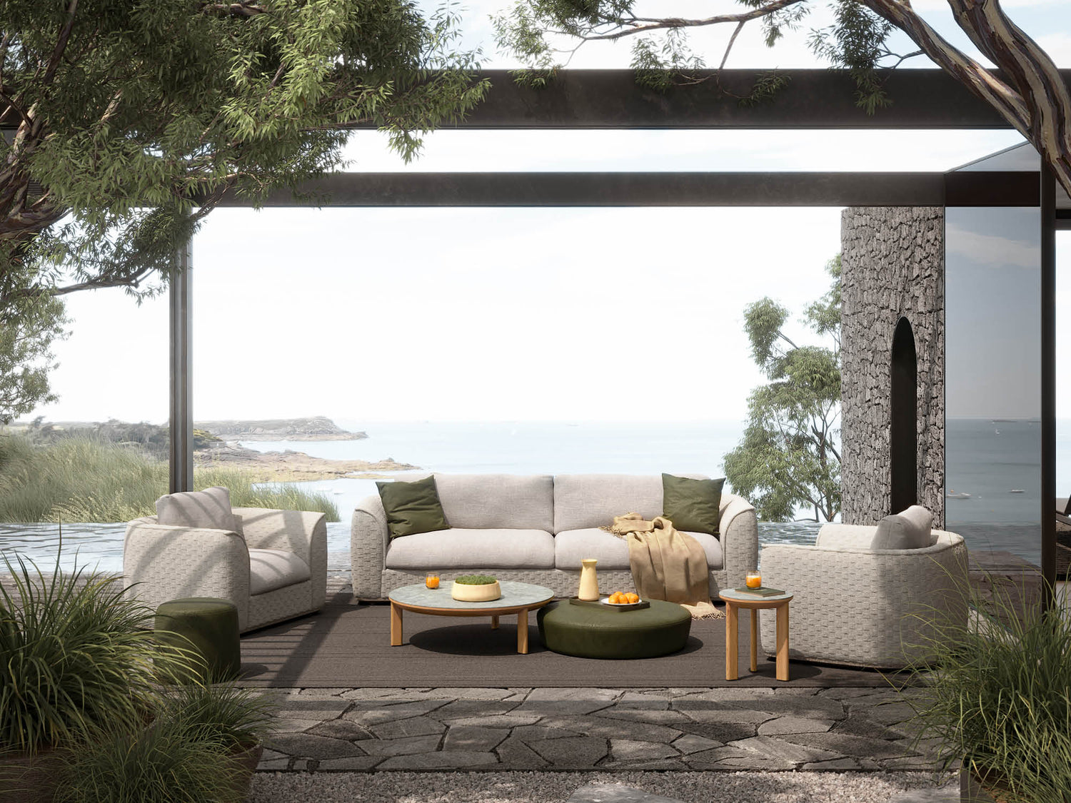 Inspired by days wandering along Apollo Bay, each piece is handcrafted from Twitchell fibre, woven onto powder coated aluminium frame, a blend of comfort, elegance, and durability. Unwind in Apollo lounge chair, recline on the 2-seat sofa, or gather together on the generous 3-seat sofa.