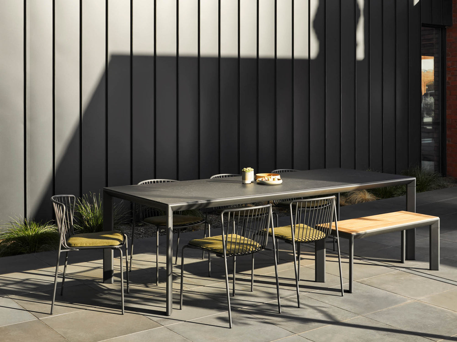 Bench seating will maximise the number of people you can sit at your outdoor setting, providing a flexible option for larger events. Draw the eye outdoors with a bench seat placed under your favourite tree or in front of a large textured wall. Decorate with some colourful seat or deco cushions for added comfort and style.