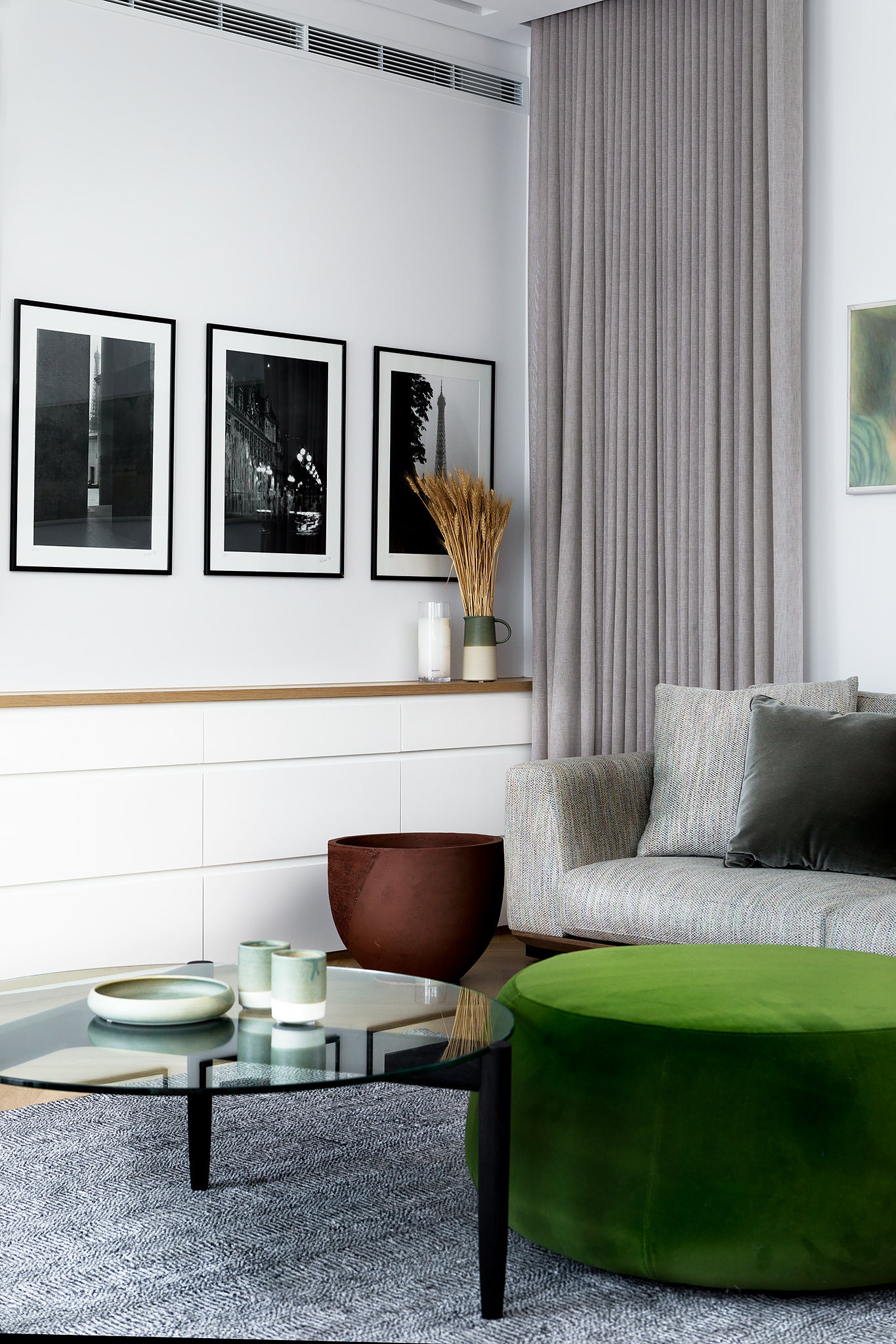 The interior exudes style with bright accents of colour, whilst remaining relaxed and inviting with a plush Kett Otway sofa and comfortable soft furnishings throughout the home.
