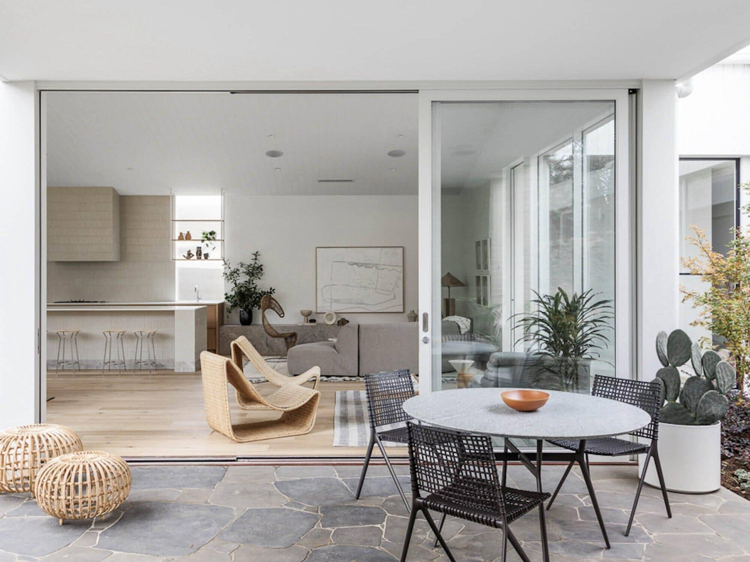 Embracing warm timbers, exposed bricks, and black accents, the interior exudes a contemporary Australian style.