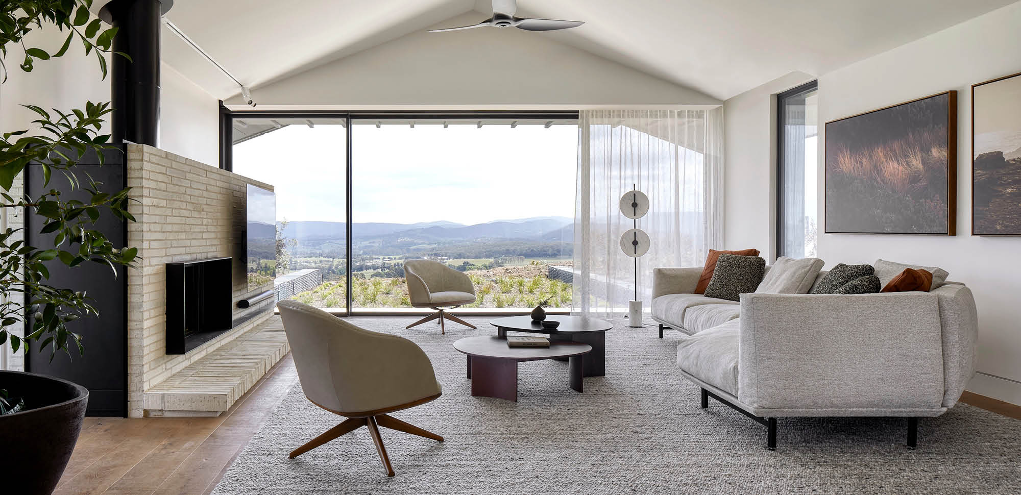 Furnished with Kett pieces in both indoor and outdoor spaces this collaborative project successfully forged an environment that seamlessly blends with the awe-inspiring views of the Yarra Valley landscape.