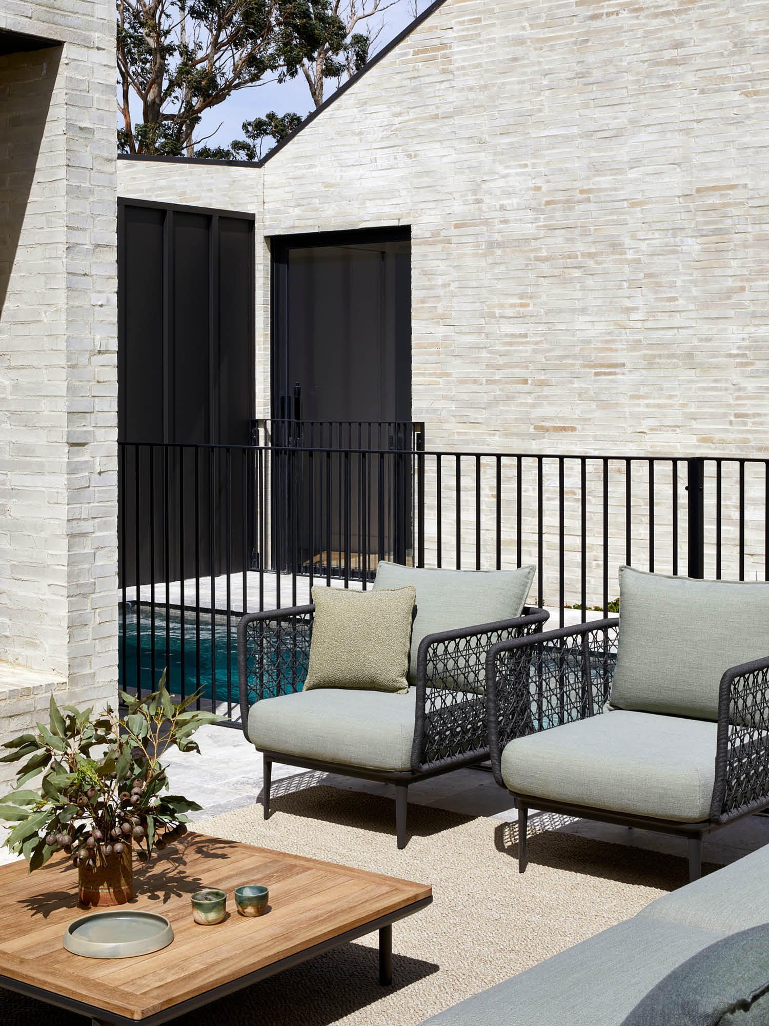 With generous scale and luxurious proportions, the outdoor spaces are furnished with quality teak outdoor furniture, suited to areas exposed to the harsh Australian sun.