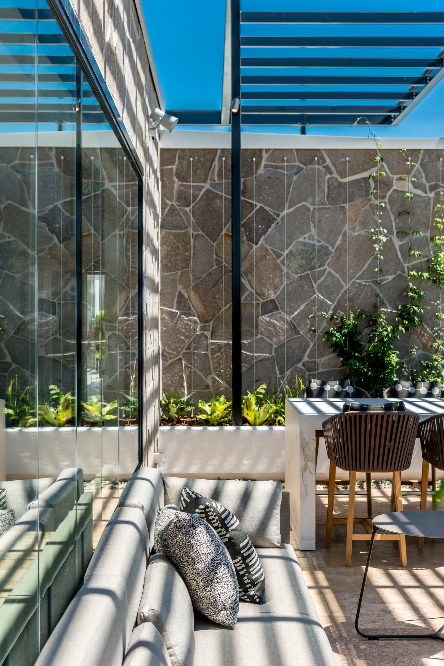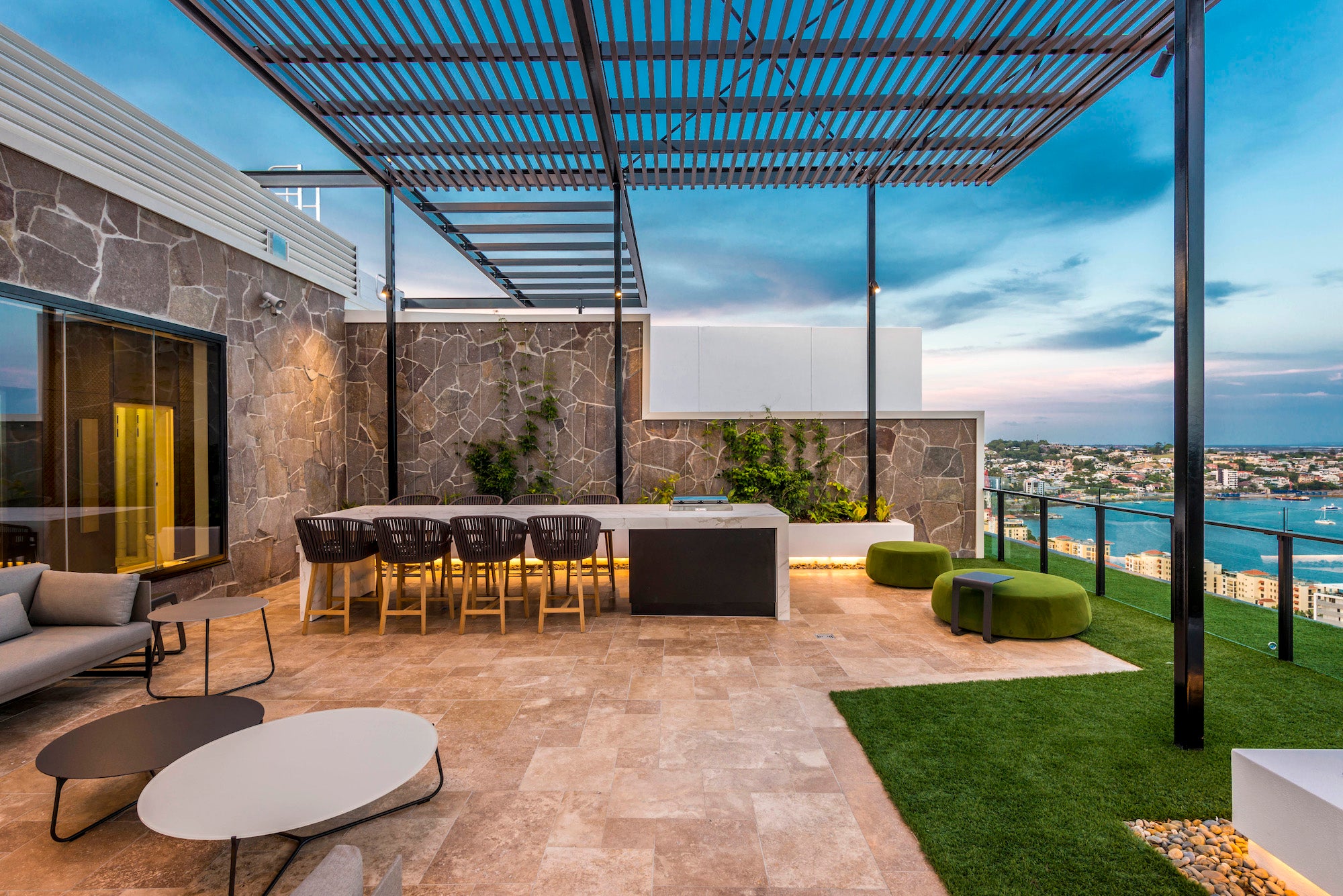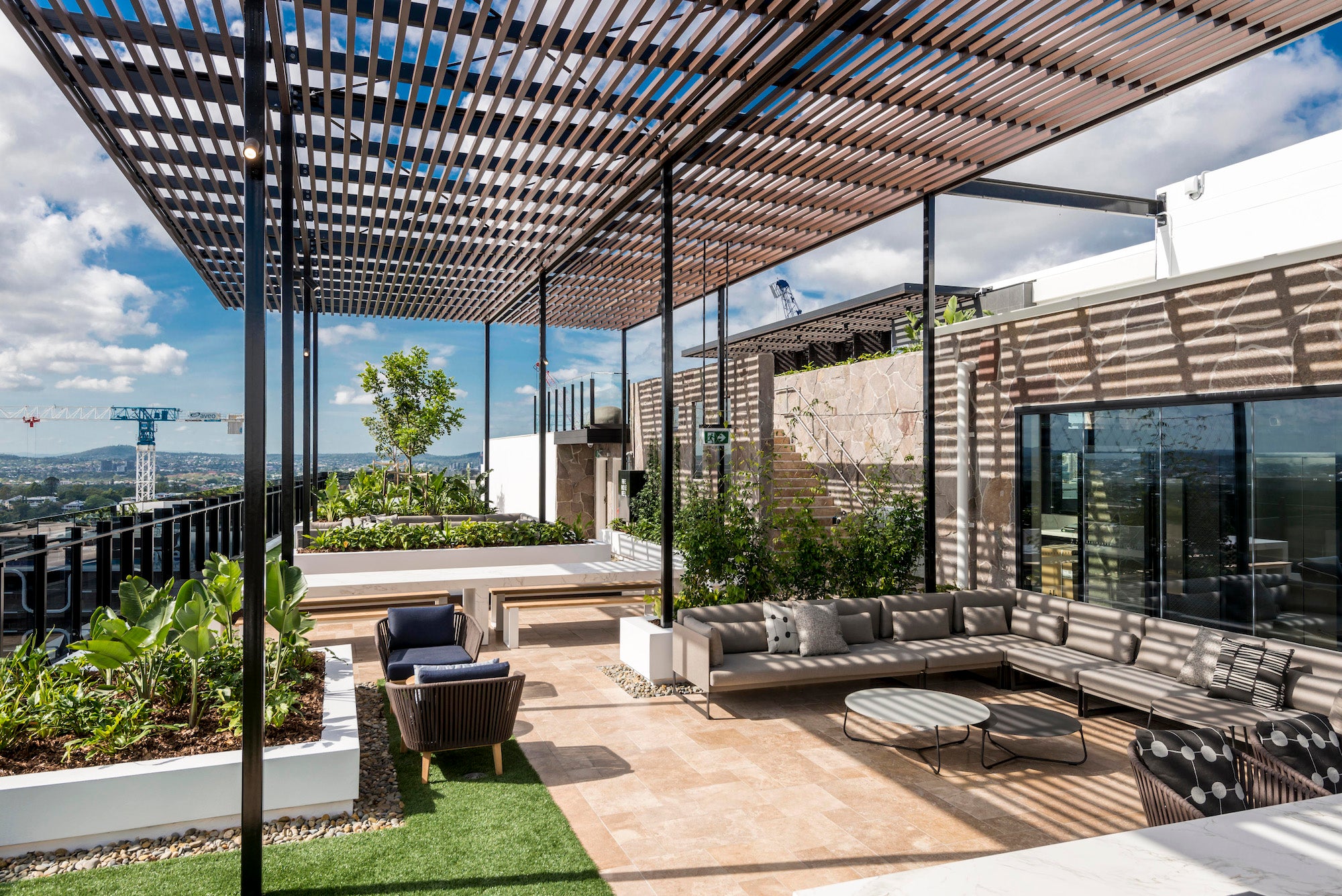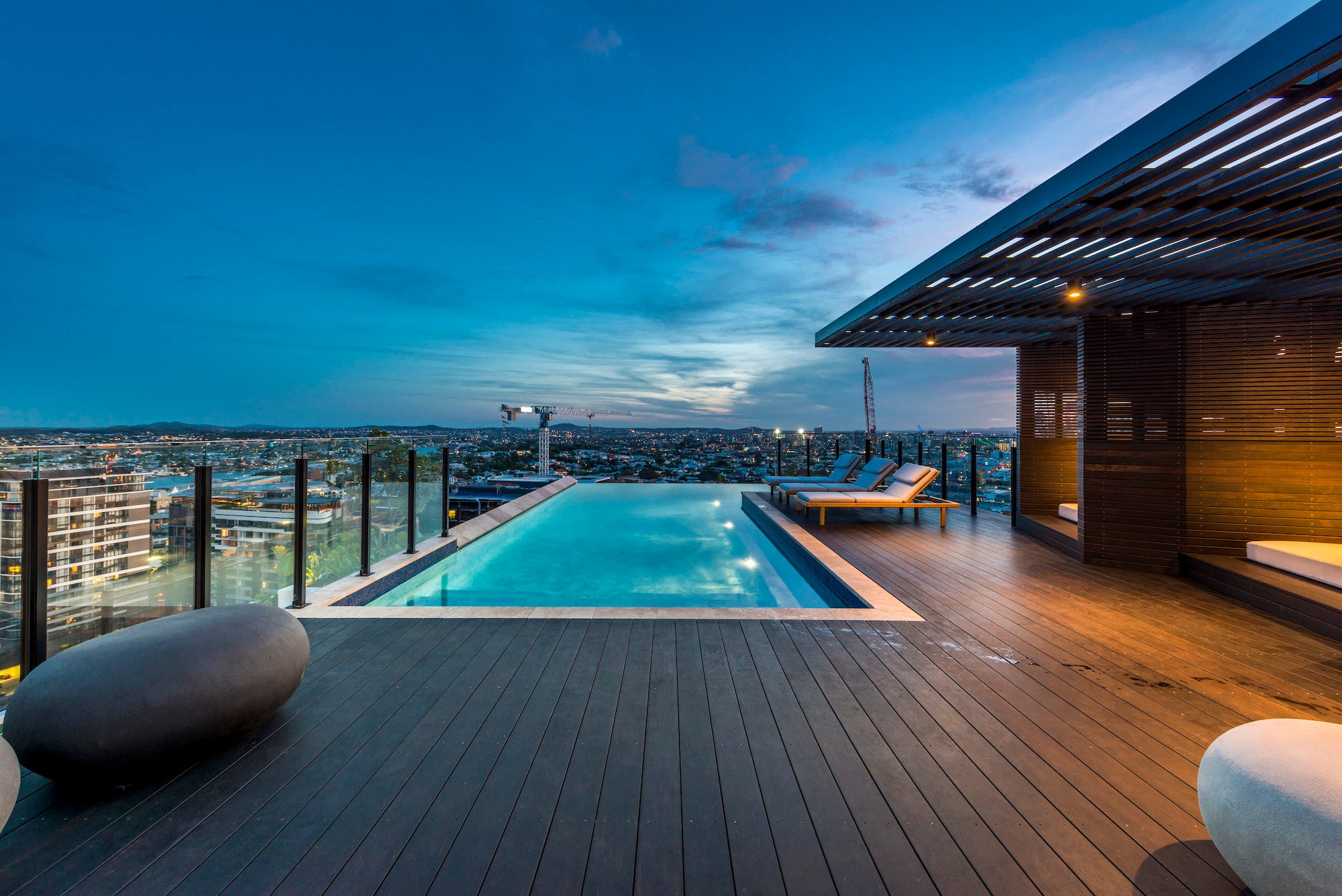 Backed by a palette of natural materials, a range of bespoke quality furniture by Tribu and Manutti was deemed the obvious choice for this project. Stand out pieces for MMO include the Tribu Nomad velvet ottomans in the BBQ area, and the giant Atelier Vierkant ‘pebble’ sculptures. This sublime mix of sophisticated and exciting outdoor products, are guaranteed to keep guests entertained well after the sun goes down, overlooking the majestic river city.