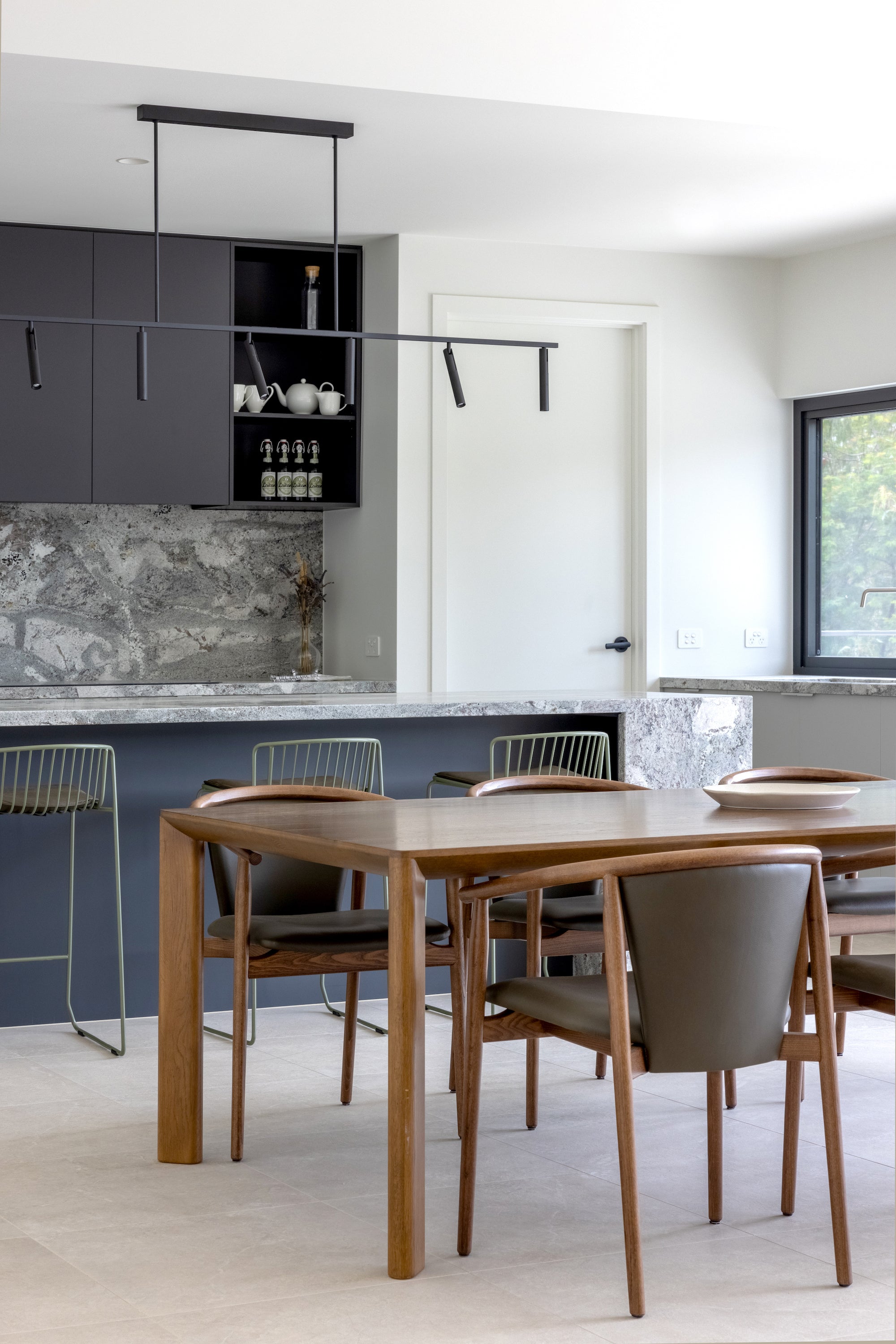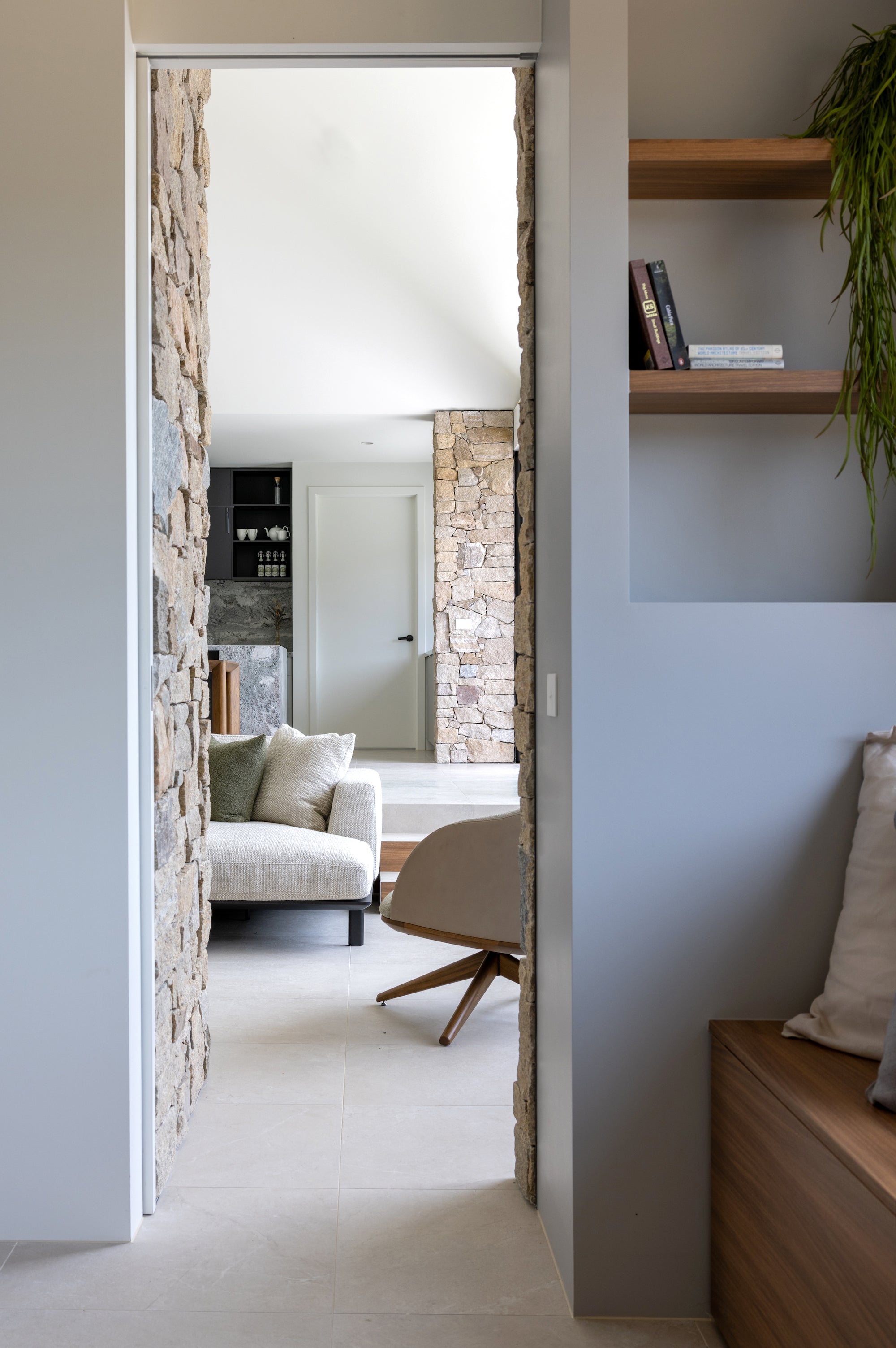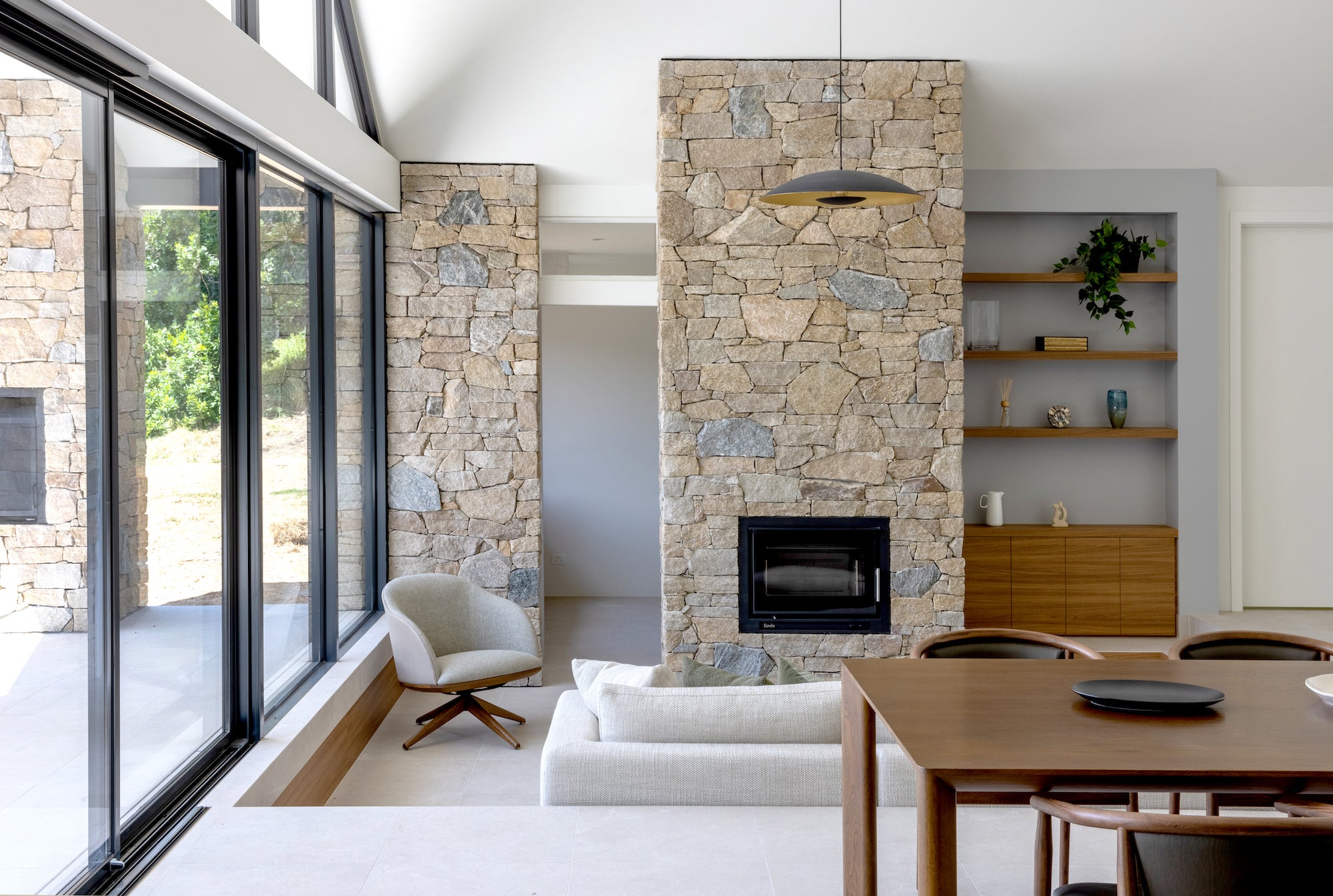 Whisker Architecture aimed to create a home that harmonised with its surroundings and reflected the values of sustainability, comfort, and elegance. Cosh Living’s curated selection of Australian-made furniture from Kett complements this vision, bringing a refined sense of warmth and connection to nature. The Glenaire Swivel and Otway modular sofa provide inviting seating in the open-plan living area, offering comfort while framing stunning views of the bushland. The Otway dining table and Otway armchairs further enhance the interior, echoing the home’s natural textures of stone, & timber, creating a visually cohesive atmosphere.