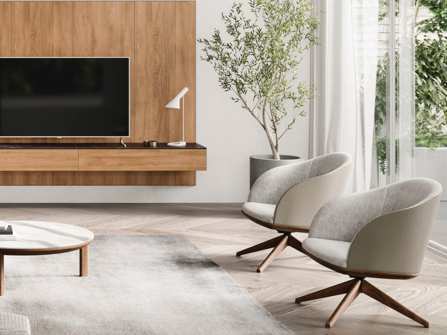 Classic materials and modern proportions, Glenaire is a balance of artistry and engineering. Atop a solid timber base and legs with an integrated swivel mechanism, a soft line flows from the arm into a comfortable backrest.