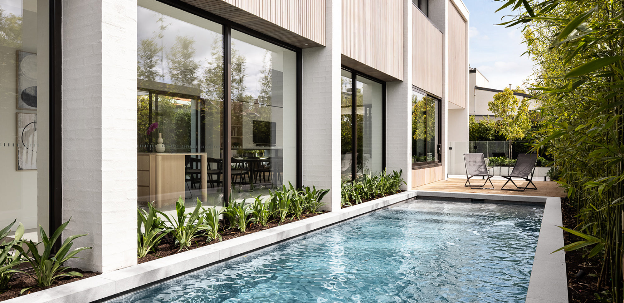 Webster Architecture’s vision of a contemporary 5-bedroom family home with two living zones, was brought to reality by Mazzei Home Builders. This entertainer’s dream home, Linacre Road focuses on grand modern structure and tactile details that work together in perfect tandem to provide the new homeowner with an indulgent living experience.