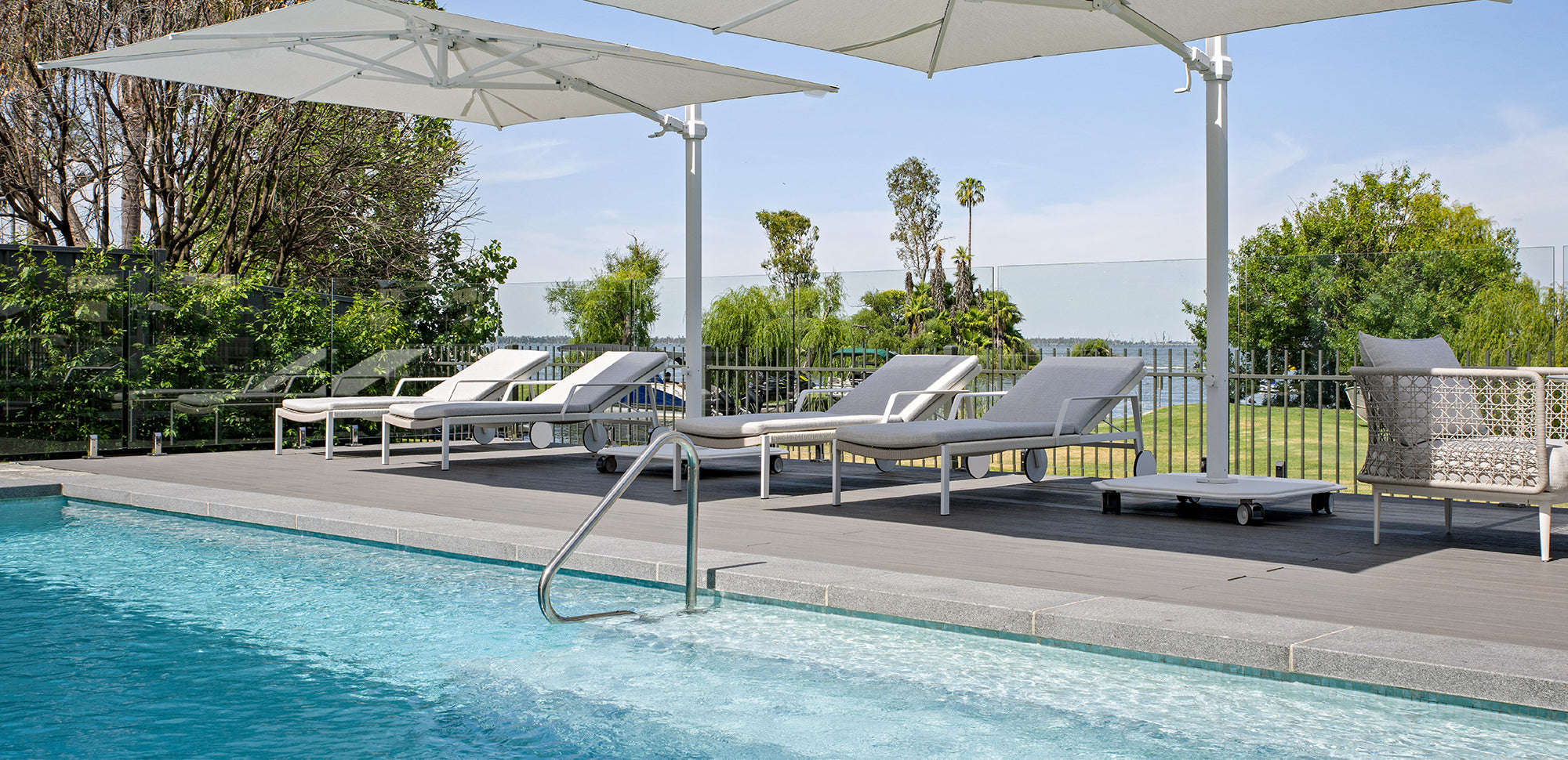 One outstanding example of the Hamptons style can be found on Lake Mulwala, NSW built by the award-winning construction company Hadar Homes. The residence is a breathtaking exemplar of the style, while indoor and outdoor furniture by Australian and European brands from Cosh Living come together, creating a cohesive and elegant ambience.