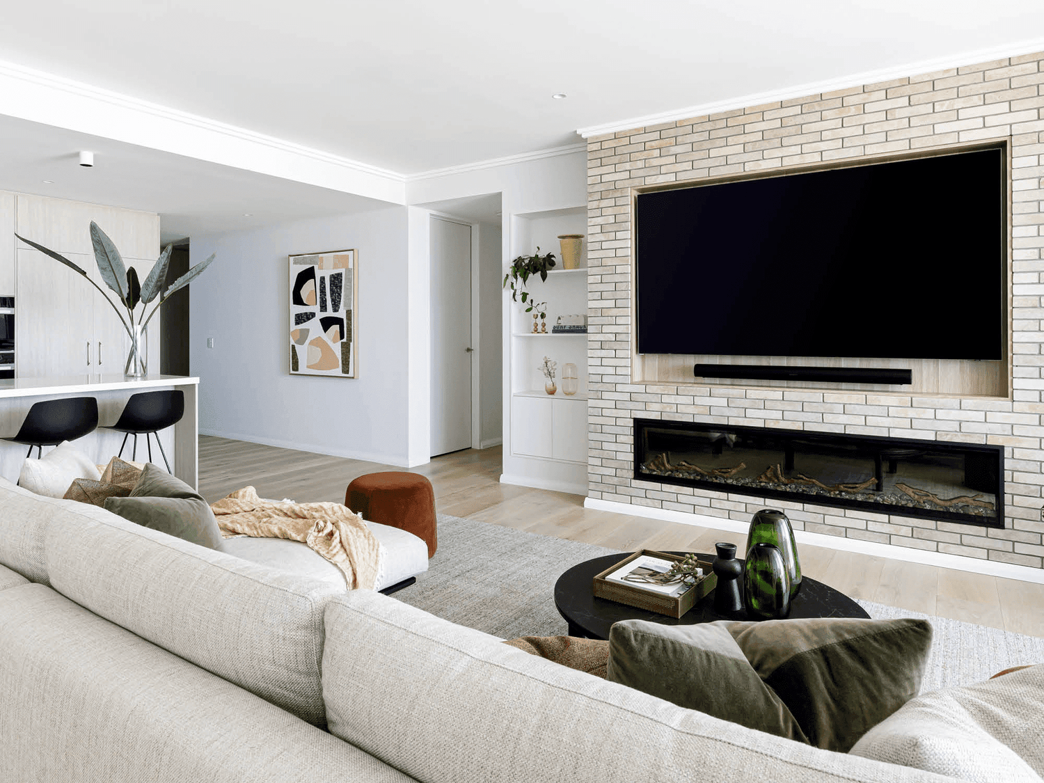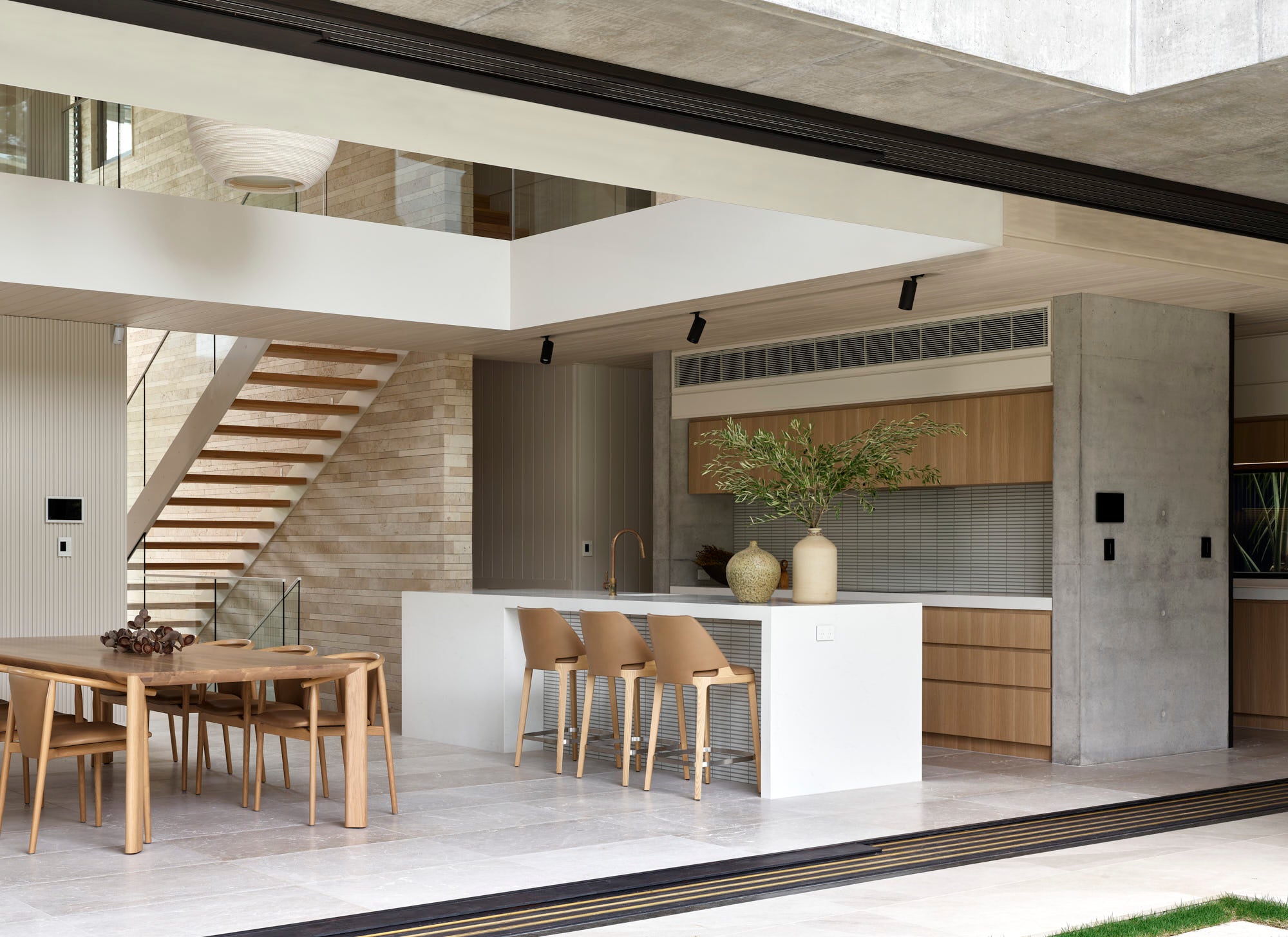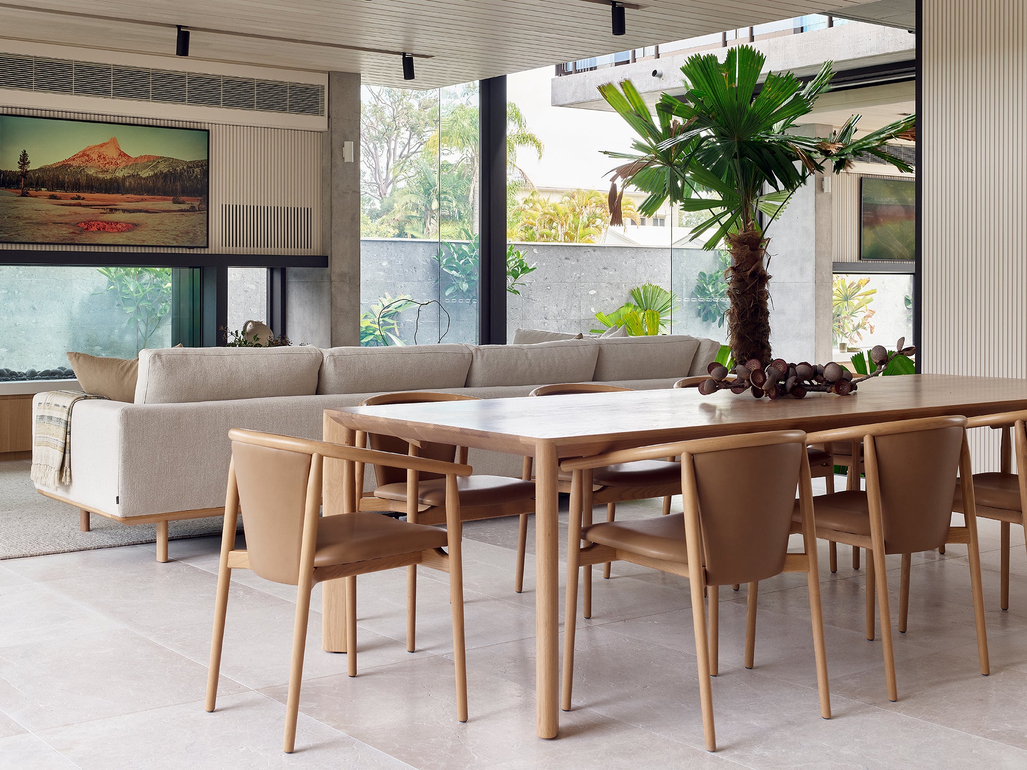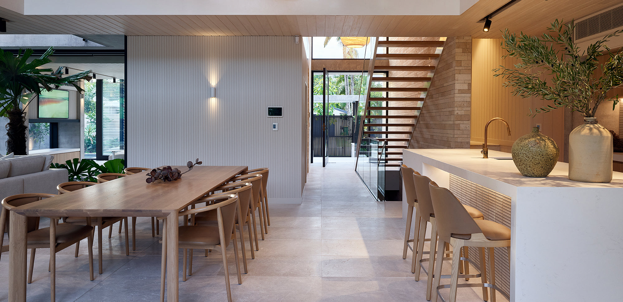 Soft beiges and off-white tones throughout result in a very relaxed aesthetic. With a focus on Australian-designed & made furniture and guidance from Cosh Living, Tim Ditchfield specified exceptional locally made pieces by Kett, pairing them with contemporary classics from Tribu and Potocco.