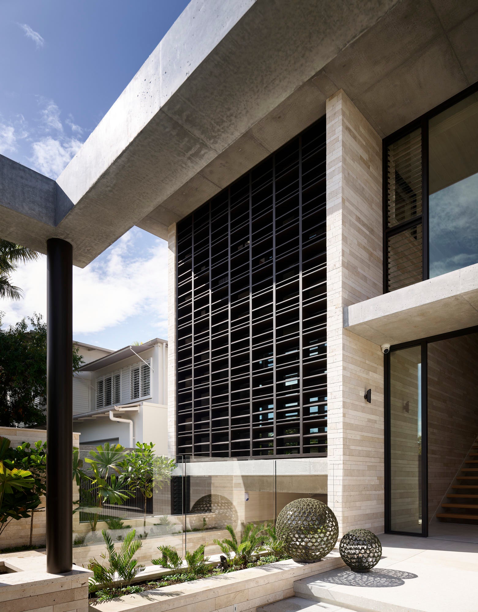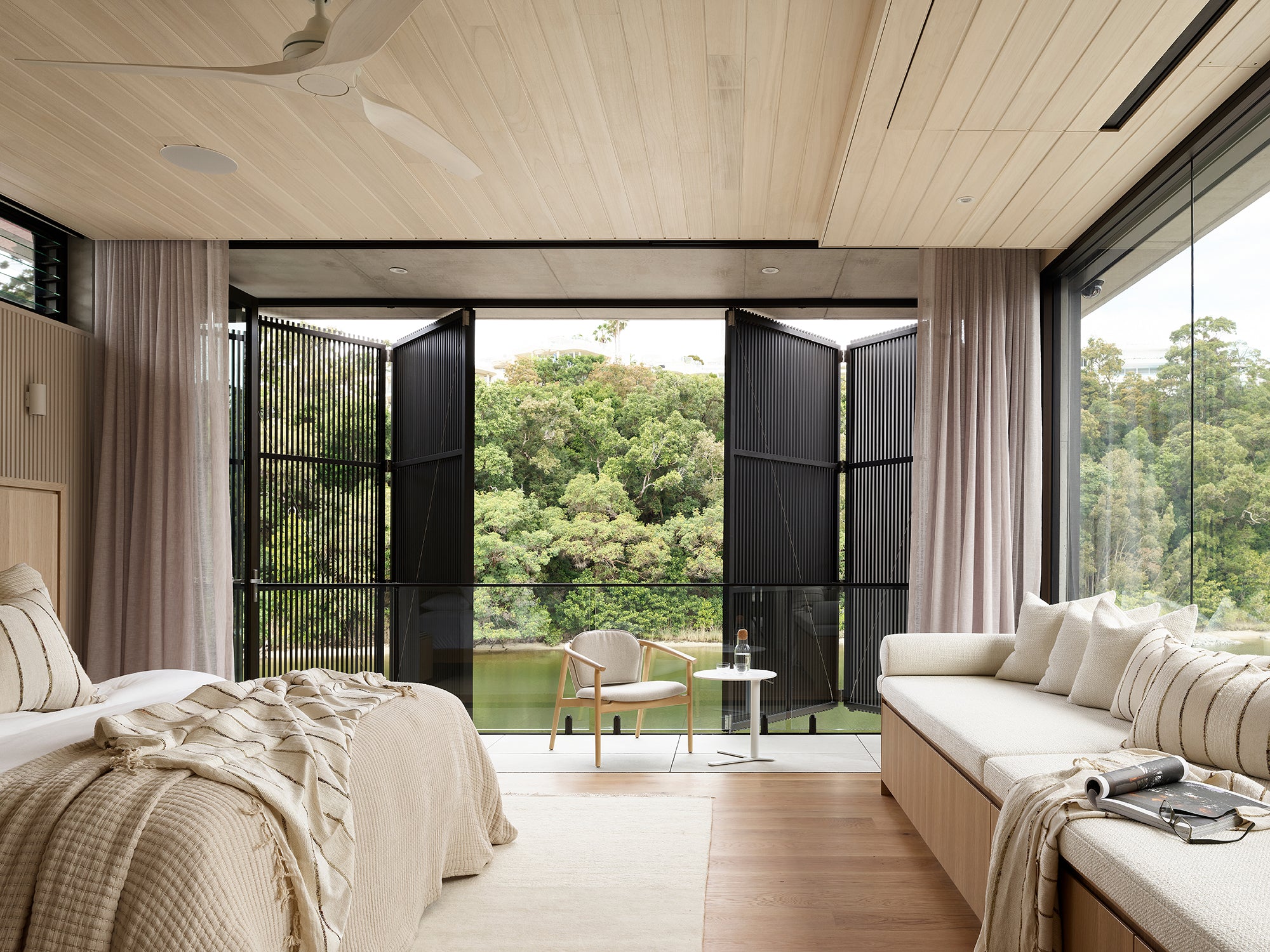 With its strong horizontal lines and impressive façade, Riverstone by Tim Ditchfield Architects blends elements of Brazilian modernist and mid-century modern architecture to create a home that is timeless in aesthetic and considered in its use of texture and materials.