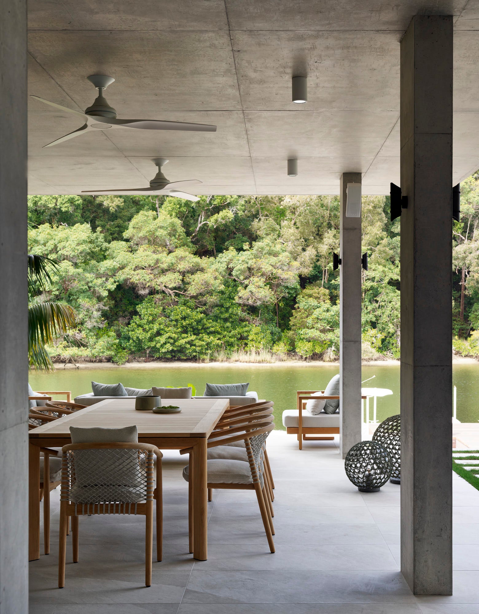 Riverstone's outdoor furniture selections were curated with intention, taking advantage of Queensland's tropical climate. With architecture that facilitates seamless outdoor living, the space is perfectly designed for entertaining family & friends all year round.
