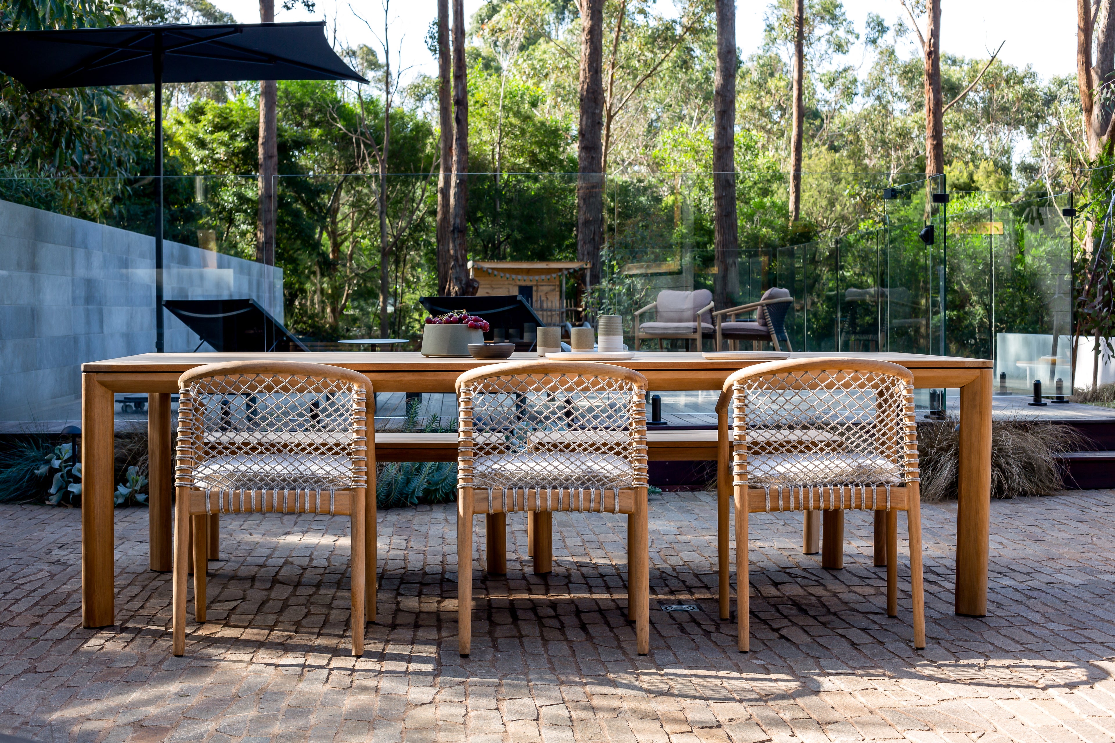 See Product InformationMaterials: Solid Teak frame in-filled with a powder coated aluminium frame, allowing ultimate strength and breathability. Backrests are uniquely hand woven with a twitchell UV stable rope.Seat & back cushions consist of all-weather reticulated foams surrounded with 200 grams of Dacron, providing ultimate breathability & drainage.