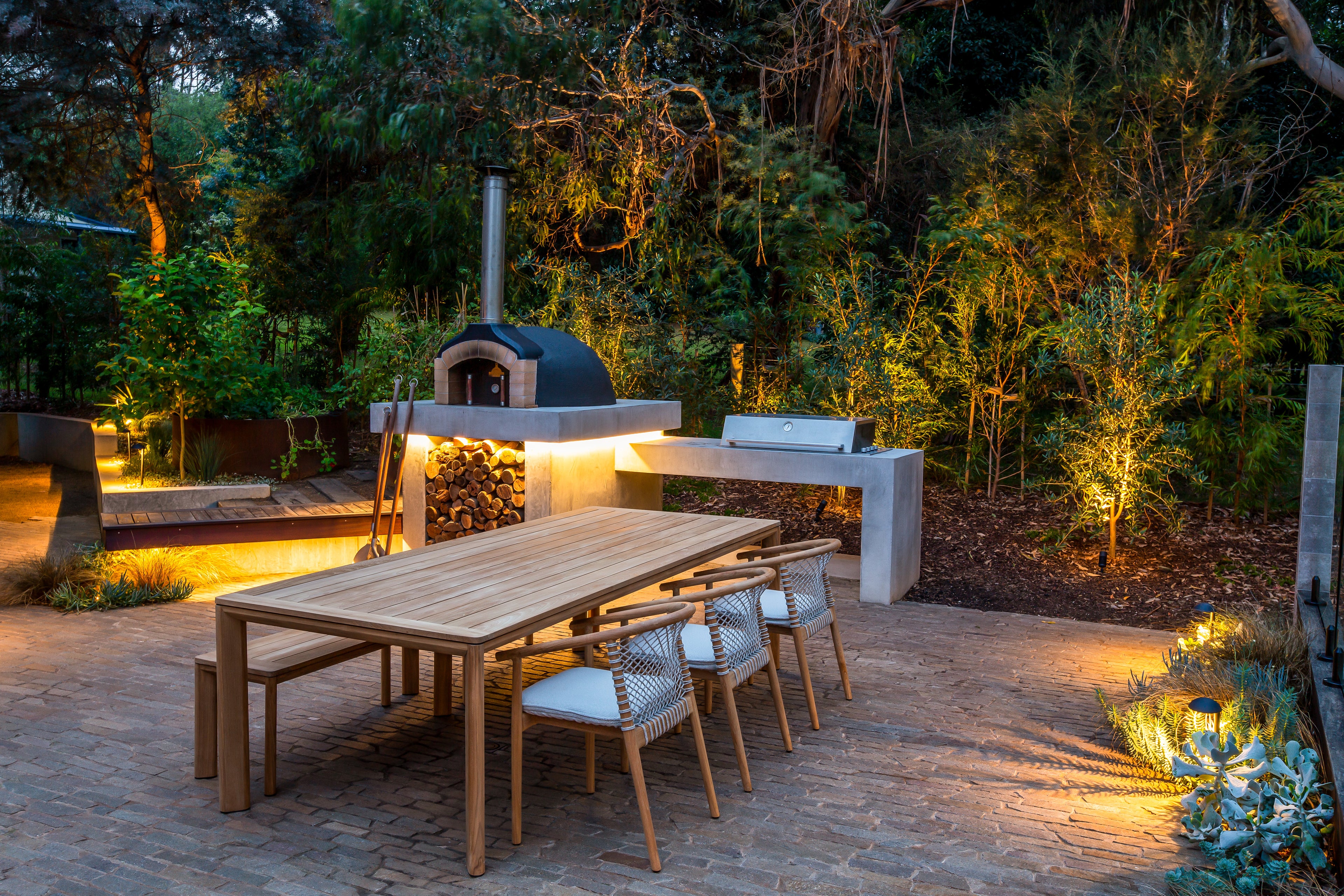 The expansive lap pool seamlessly integrates with the landscape, complemented by a sunken fire pit for cosy evenings with loved ones. Ample lawn space allows children to play freely, while alfresco areas featuring a wood-fired pizza oven and BBQ cater to adults seeking the quintessential Australian lifestyle.