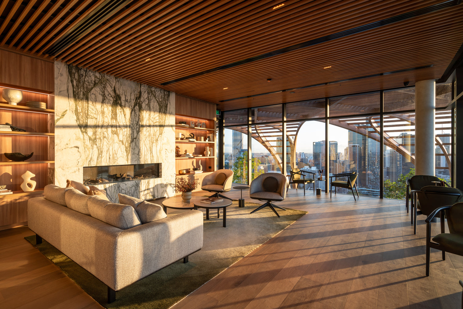 Featuring the Otway sofa, Upper House draws inspiration from the natural shapes found in the Daintree Rainforest. Nestled just moments away from the vibrant Southbank cultural precinct, this development is strategically oriented to embrace the captivating Brisbane skyline.