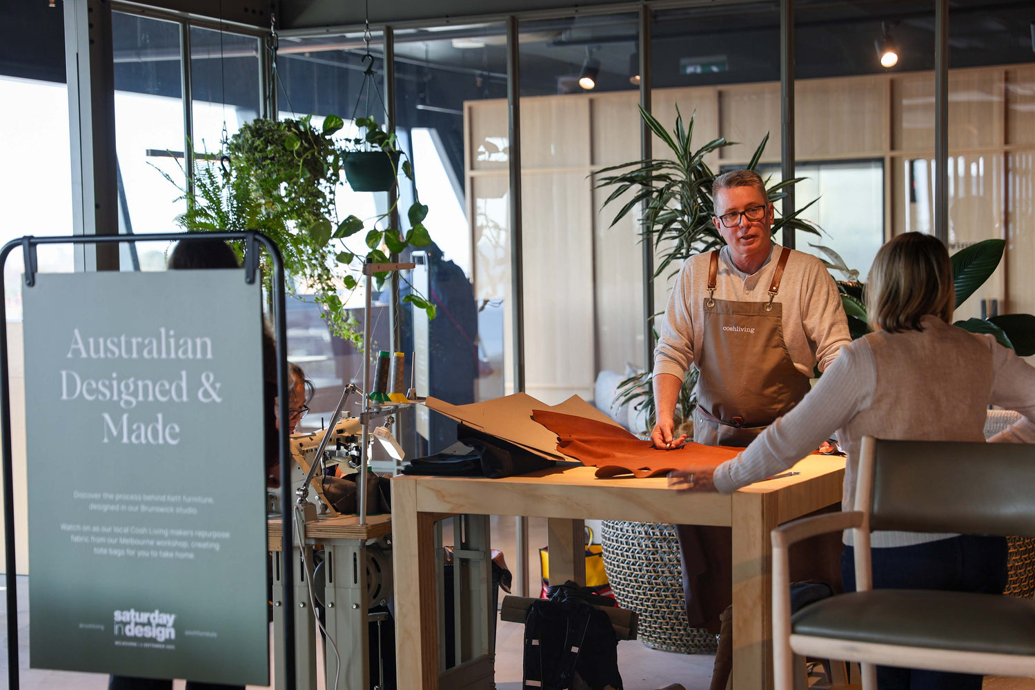For over ten years, we have operated our own Cosh Living workshop in Melbourne. We are proud to employ fifteen skilled local makers to measure, cut, sew, assemble, refine and review all our upholstered furniture. We partner with timber specialists across Melbourne to craft our solid timber dining tables, desks, coffee tables and sofa bases. The Frame collection by Kett is also made and assembled in Australia. We work with collaborators in northern Italy to produce storage furniture, dining chair bases and selected natural stone tables.
