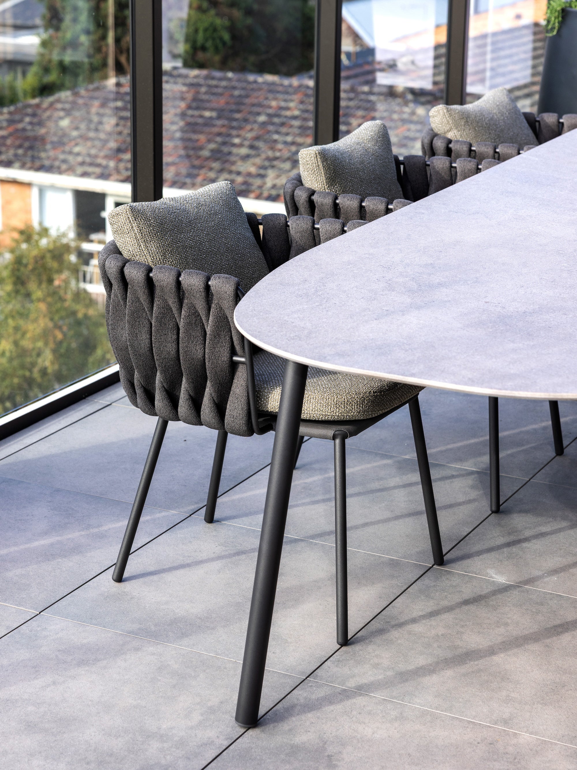 See Product InformationFemininity and emotion were key words in designing this luxury collection. Technical perfection goes hand in hand with pure beauty, a trademark shared by Italian designer Monica Armani and Belgian outdoor manufacturer Tribu. The ceramic tabletop in a beautiful oval shape has a very natural look and feel, echoing the effect of natural stone, while being non-porous for easy everyday use.Â