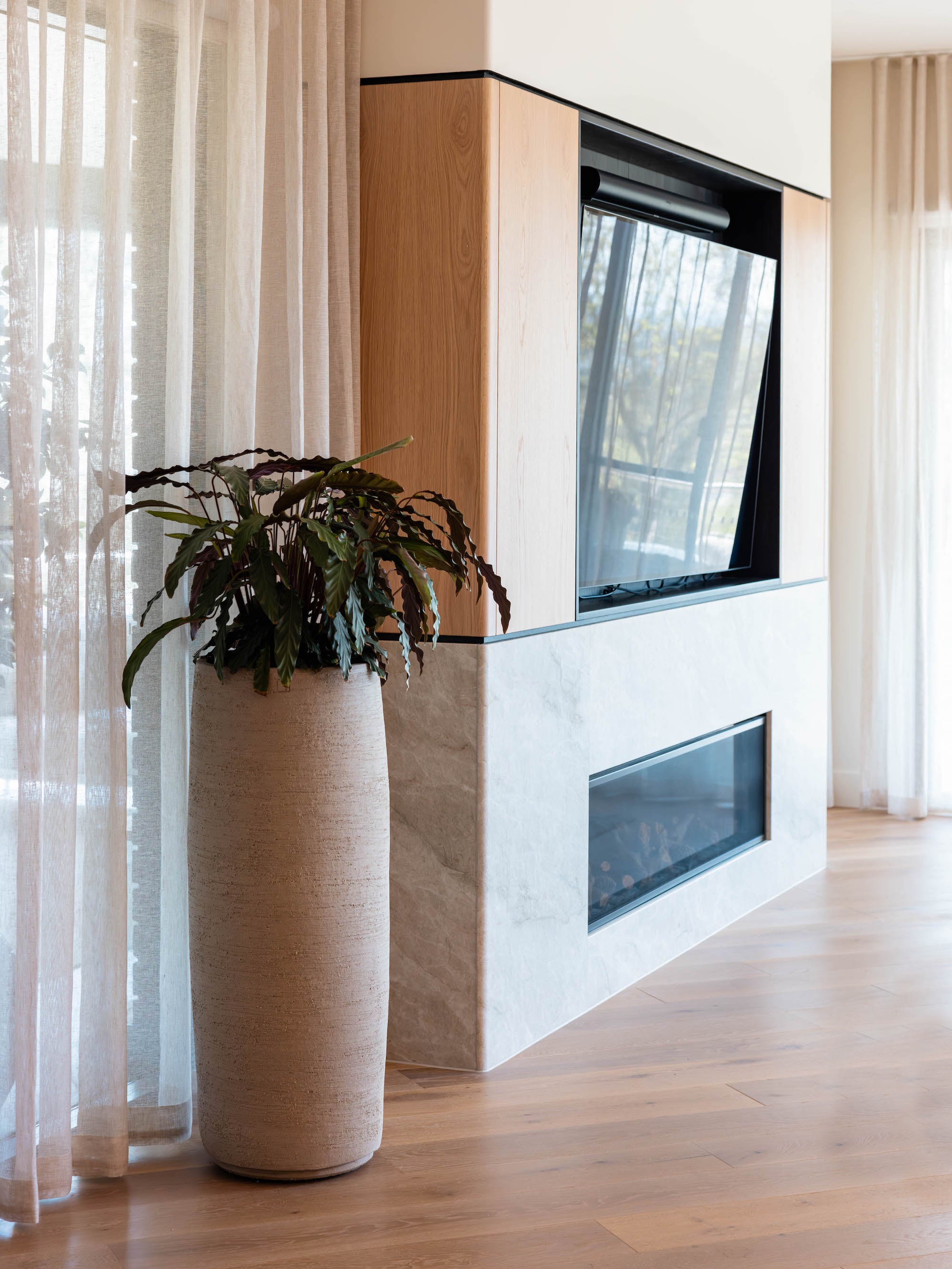 Throughout the outdoor spaces and entryways, hand-crafted ceramic vessels by Atelier Vierkant add an organic counterbalance to the home’s linear architecture. Their earthy textures and sculptural presence enhance the sense of continuity between interior and exterior — a hallmark of The Eyrie’s grounded elegance.