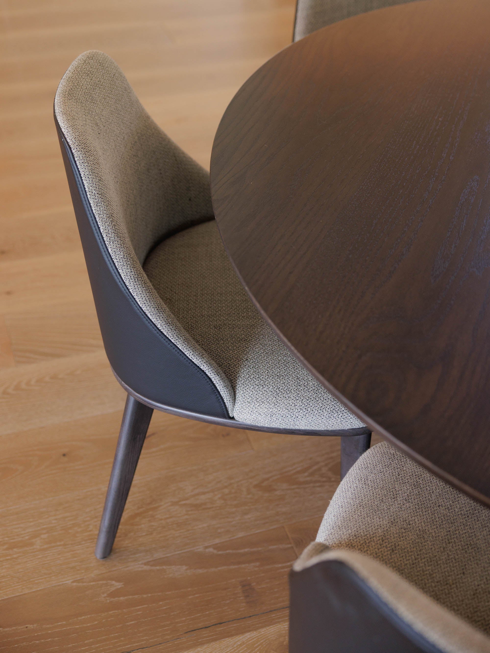 See Product InformationThe Hiru family, designed by Mario Ferrarini, includes a dining chair, armchair, and stool in two heights. Defined by helicoidal legs and planar surfaces, the collection showcases a seamless blend of wood and upholstery, highlighting the brand’s expertise in craftsmanship.