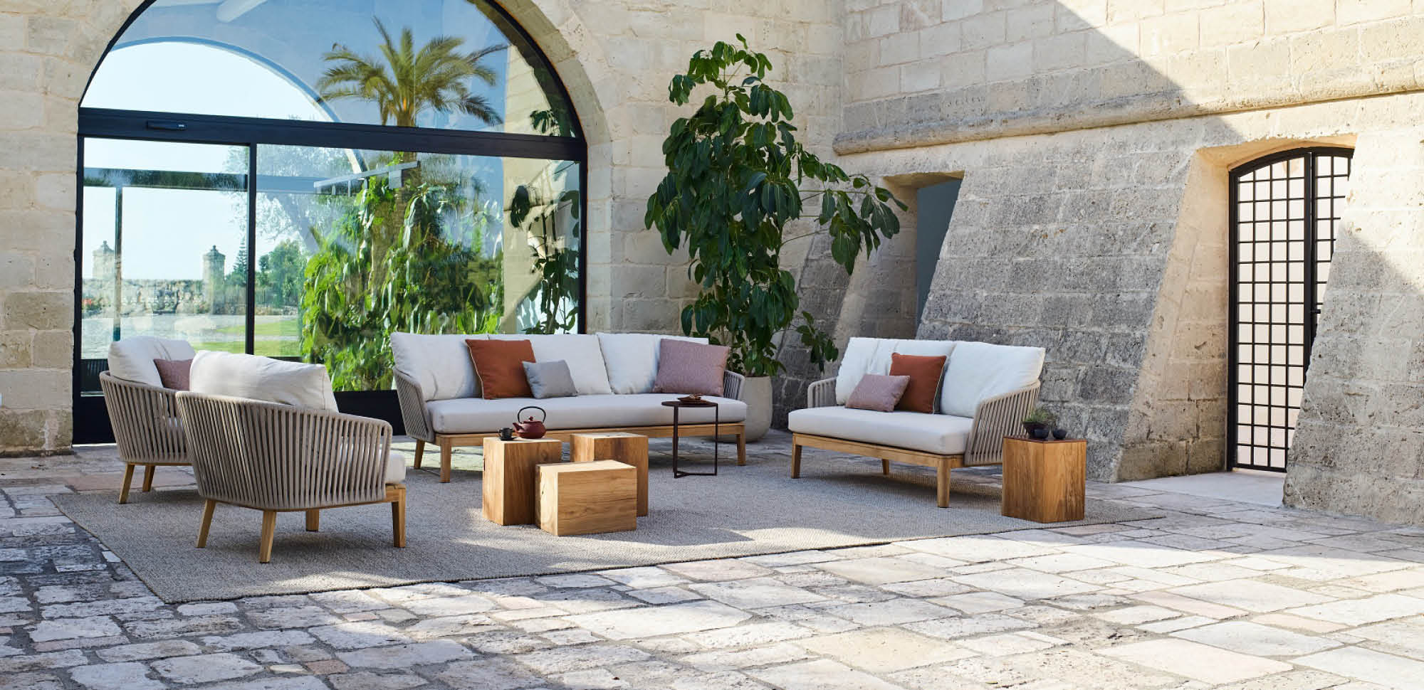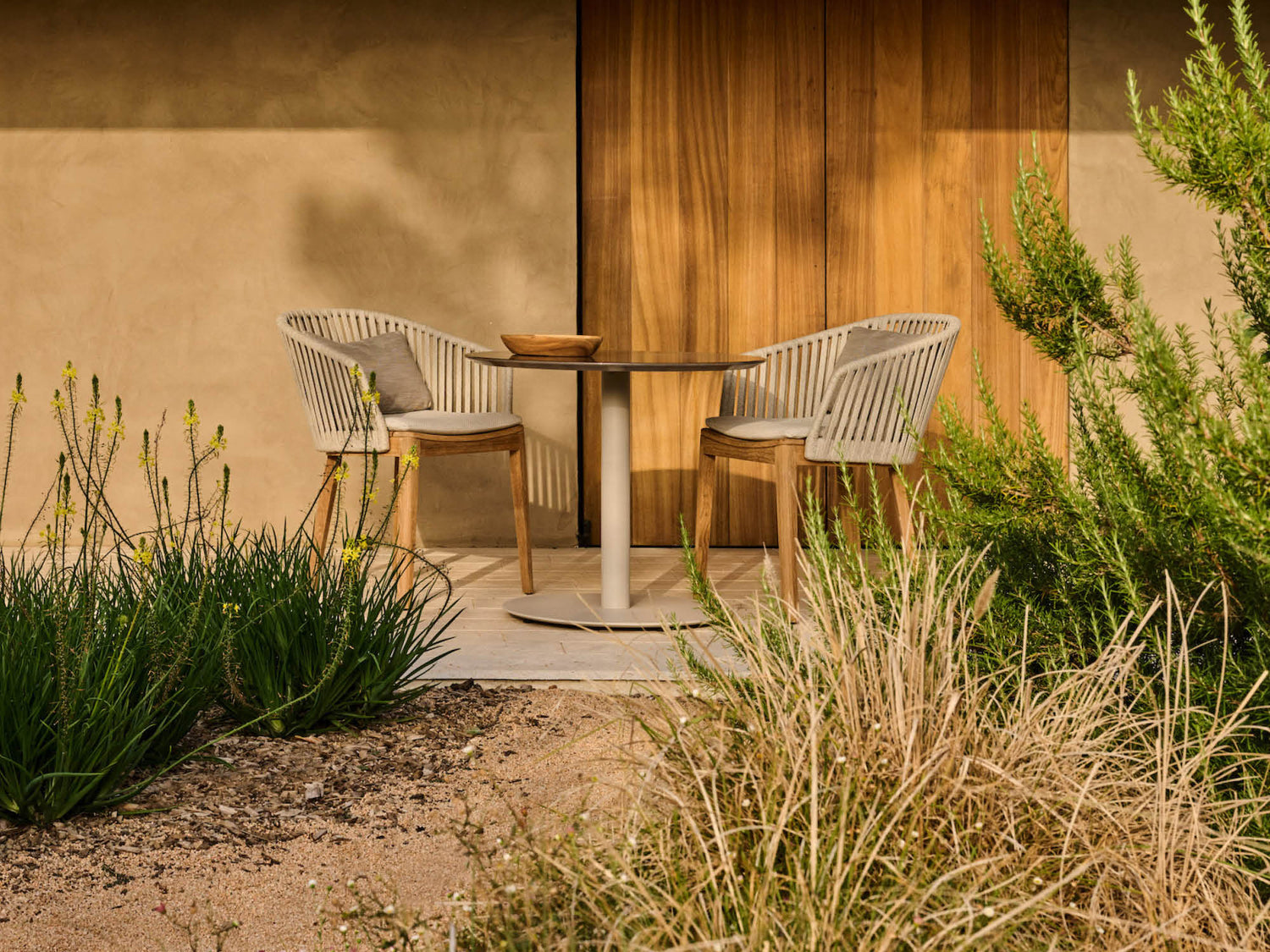 The airy design of the Mood collection and its warm combination of teak and handwoven tricord make this outdoor decor look organic & natural. The yarn weaving on the chairs, sofas and daybeds is available in a wide range of nature-inspired shades, which harmonise perfectly with any outdoor setting.