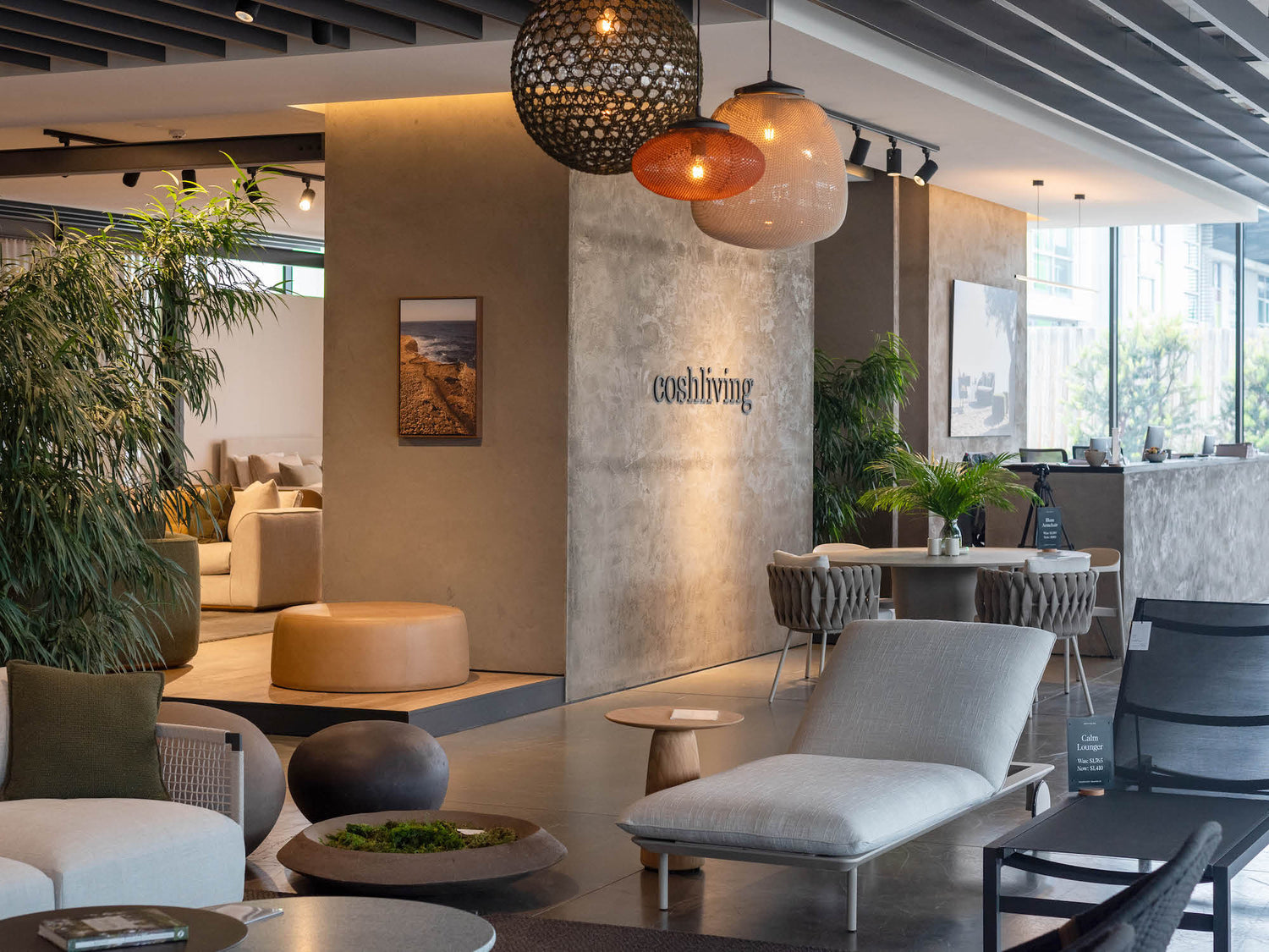The range of indoor furniture collections on display include sofas, dining tables and chairs, occasional furniture, bedding, coffee tables, side tables, storage and entertainment systems. Australian brand Kett is sold exclusively by Cosh Living, and all furniture is designed and upholstered in Melbourne while timber production utilising oak and walnut is primarily produced in the Udine region of Italy.