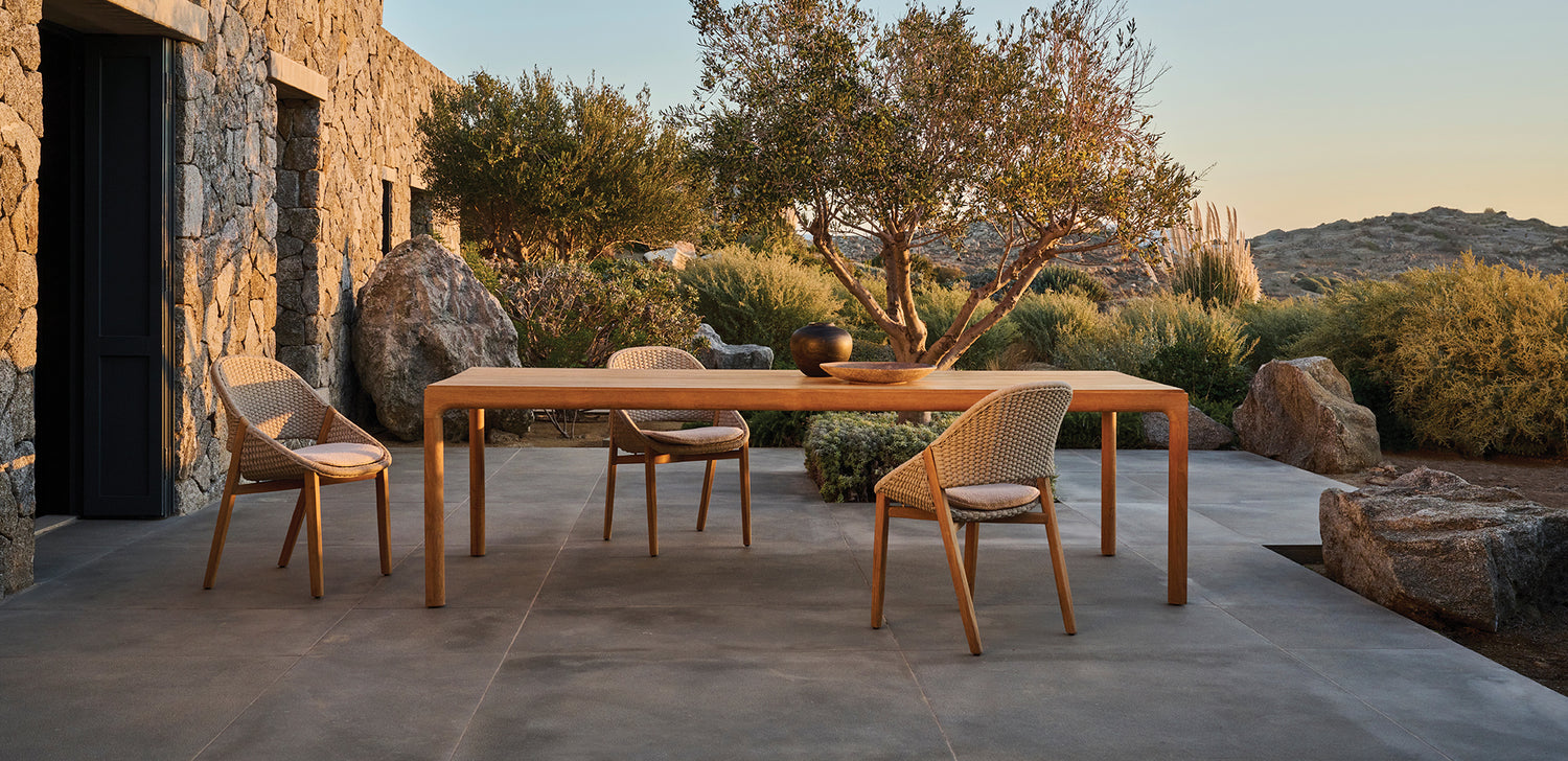 Our outdoor lounges feature innovative comfort solutions such as QuickDryFoam® technology and Batyline® sling seating, ensuring your outdoor furniture dries quickly after unexpected rain showers.