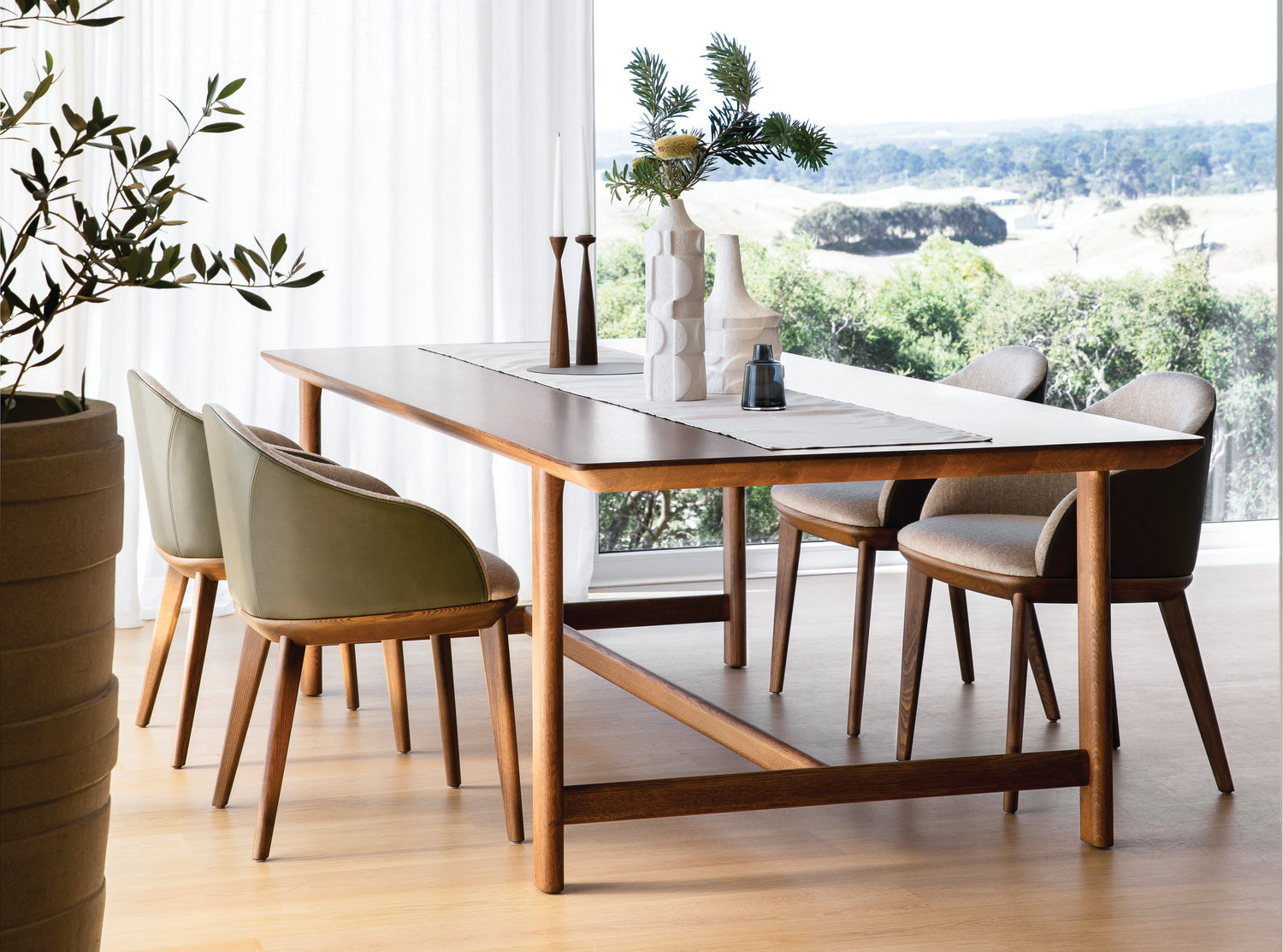 Choose from 72 upholstery options, inspired by the rich tones and textures of the Victorian landscape. With diverse selection of fabrics and stains, these dining chairs offer a perfect blend of style and comfort for your home.