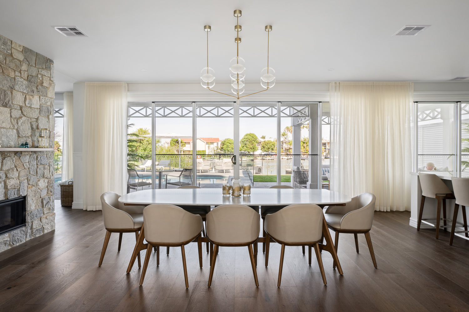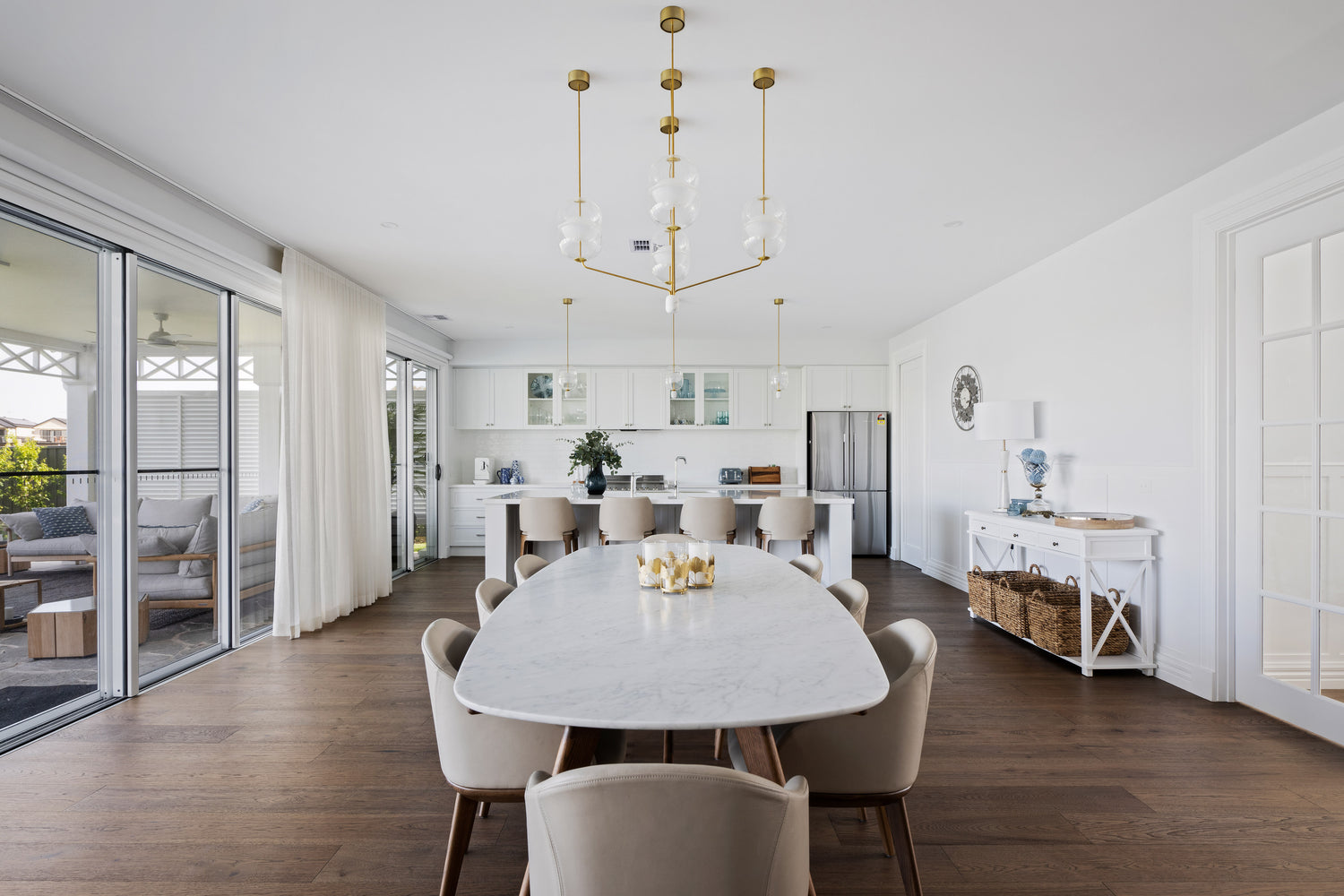The Johanna Elliptical Marble table was featured in the Mulwala NSW home. The Hamptons-style home is a beloved architectural style, particularly among those who appreciate its classic and refined design. Originating from the picturesque seaside communities of Long Island, New York, these homes are renowned for their timeless appeal
