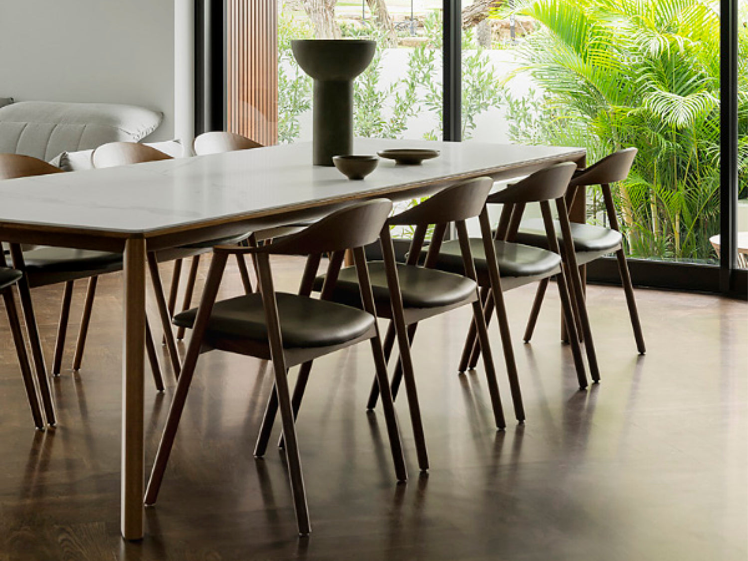 You can personalise the Karm dining chair by choosing a completely timber chair or opting for a seat upholstered in fabric or leather of your choice. Pair it with any Kett dining table to enhance your dining space with style and sophistication.