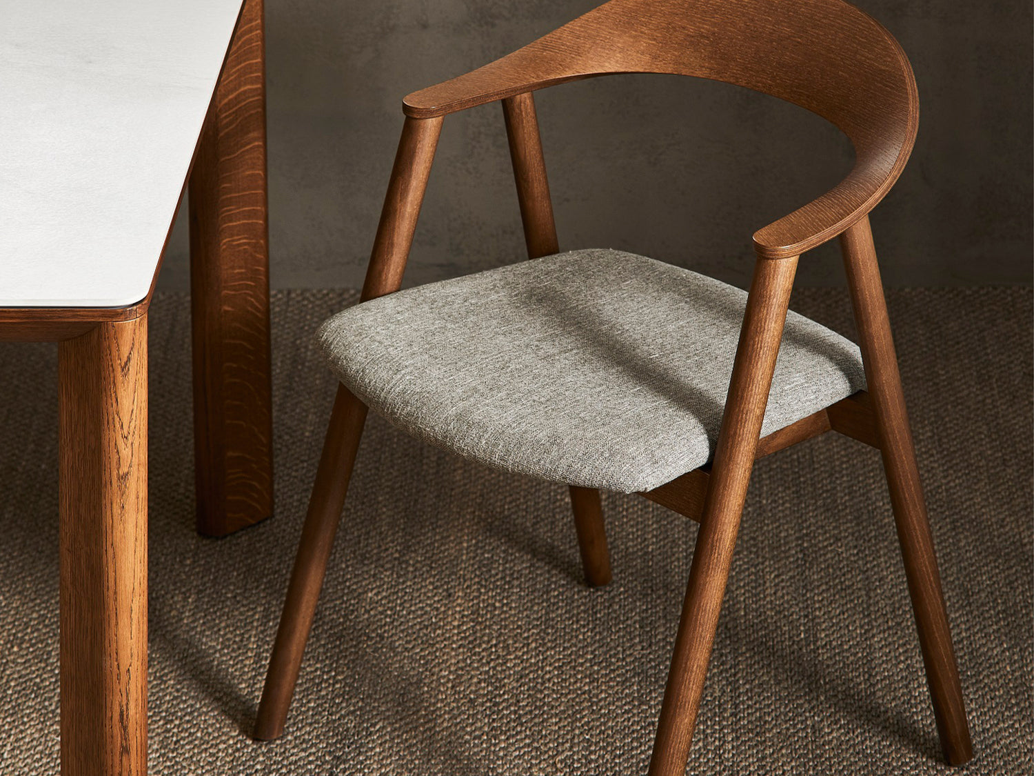 With the Karm, you can select a completely timber chair, or have the seat upholstered in a fabric or leather of your choice.
