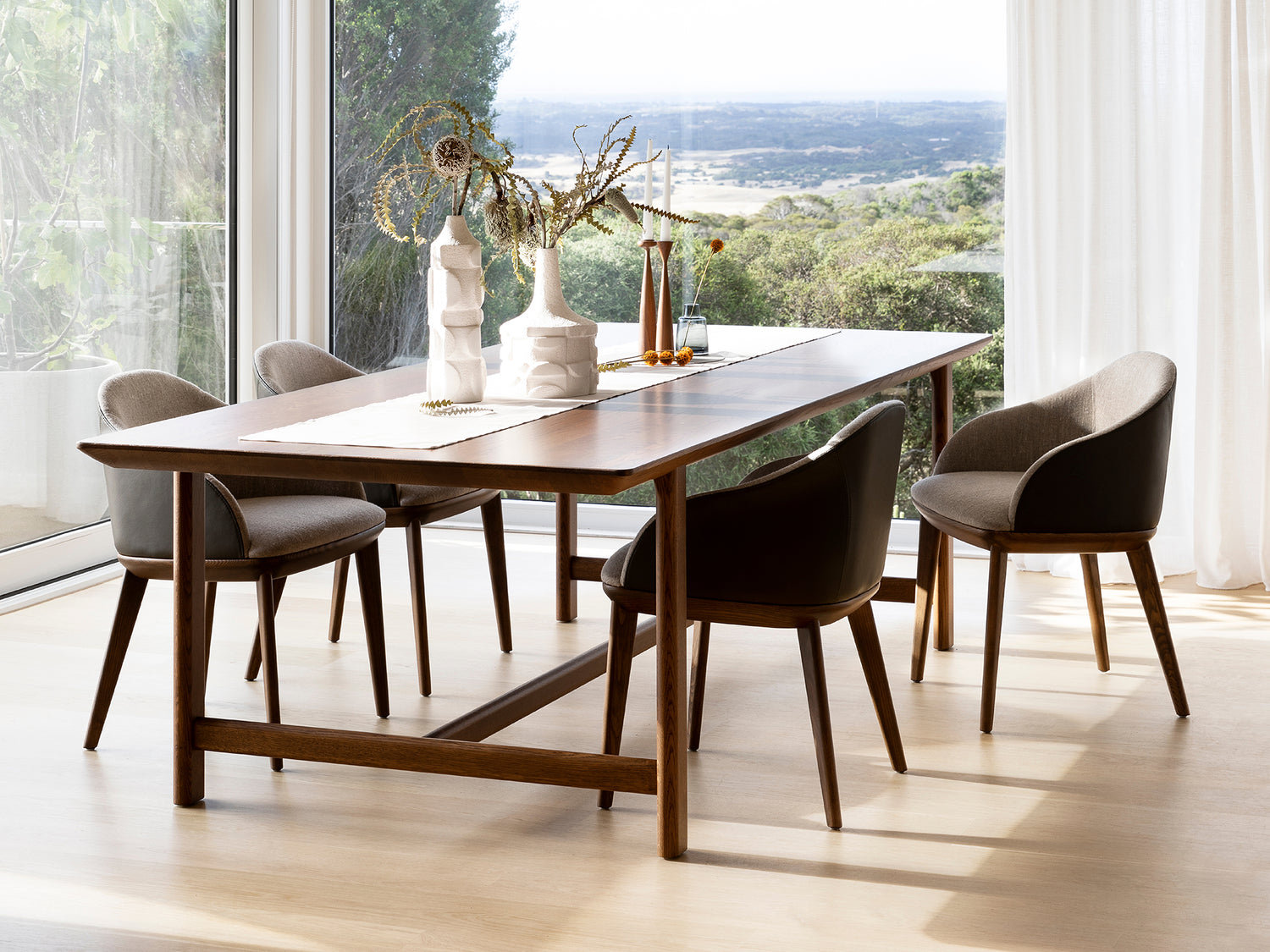 Inspired by time spent exploring the understory of the giant forests of Cape Otway. The Otway Trestle dining table is defined by its soft timber profile and elegant proportions, it's timeless and enduring quality the result of simplified complexity.